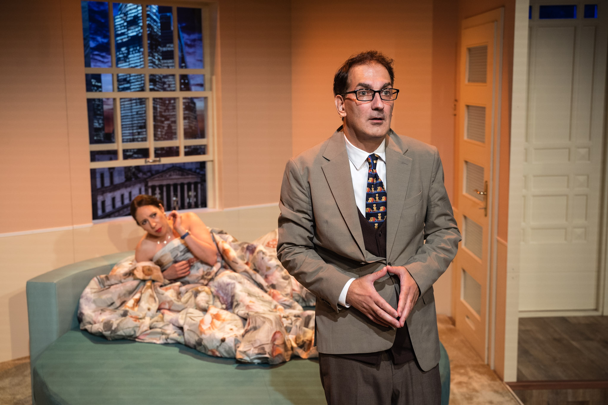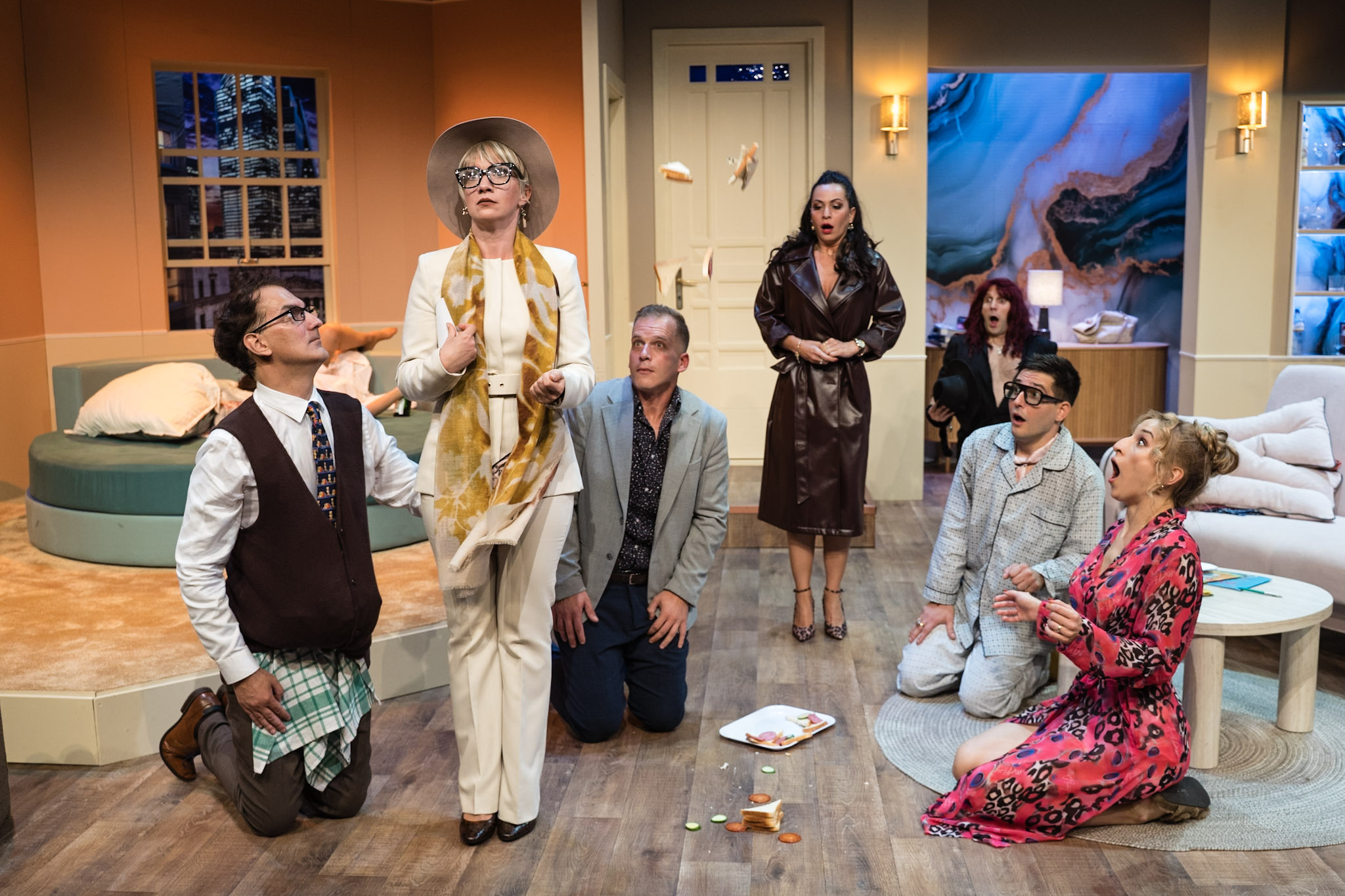 Míg a kiadótulajdonos Philip üzlettársa, a forróvérű Henry vakrandit szervez, felesége Linda újdonsült pasijával hancúrozna, a belsőépítész pedig szívesen elcsábítaná a szemrevaló au pair lányt… A lakás tehát nem egyszerűen átjáróházzá, hanem egy izgalmas bújócska-fogócska helyszínévé válik, míg végül szinte mindenki más néven és szerepben mutatkozik be a váratlanul betoppanó befutott, ám rendkívül maradi gondolkodású Miss Cooknak, aki új kiadót keres legújabb sikerkönyve publikálására.